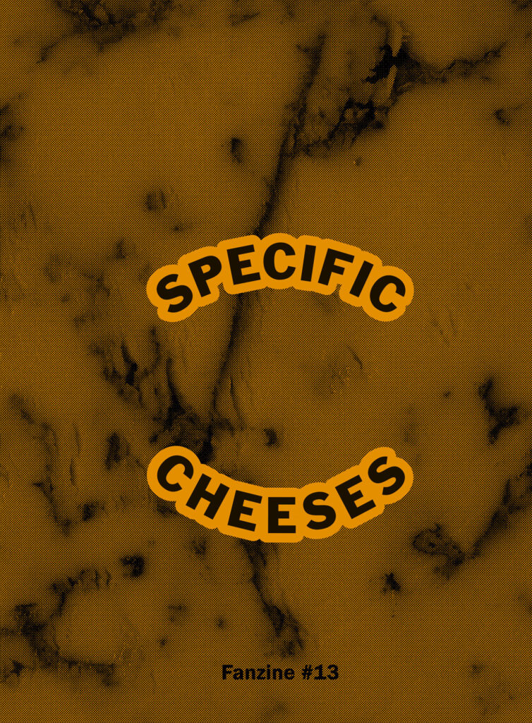 Fanzine Specific Cheeses #3 avec des contributions de Angela Beatriz, Aapo Nikkanen, Vincent Israel-Jost, Camille Azaïs, Vivian Sky Rehberg, Camille Paulhan, Bastien Gallet, Guillaume Constantin, Madeleine Aktypi, Julie Béna, Loraine Baud, Pierre Malachin